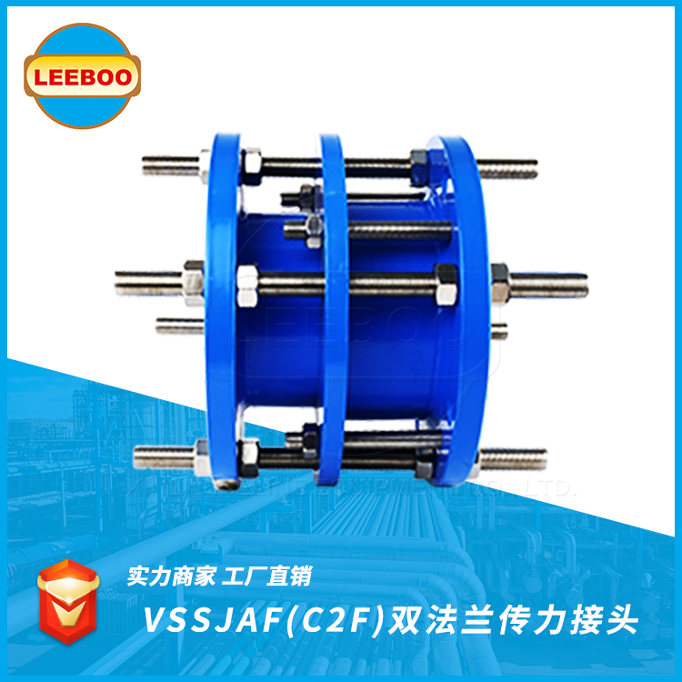 C2F(VSSJAF)型雙法蘭傳力接頭是由法蘭松套伸縮接頭和短管法蘭,傳力螺桿等構(gòu)件組成,能降低被連接件的壓力推力(盲板力)和補(bǔ)償管路安裝誤